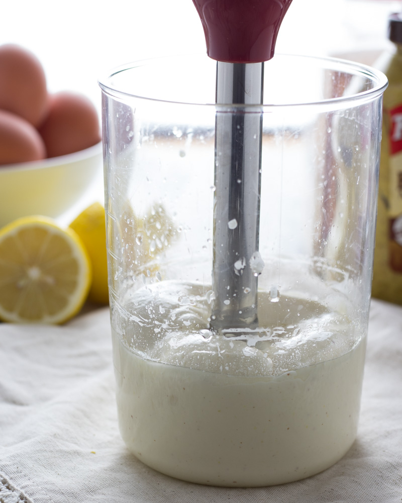 If you don’t already own an immersion blender, get one…asap! You will find it so useful in making everything from this mayo, to creamy soups, to smoothies and so much more!