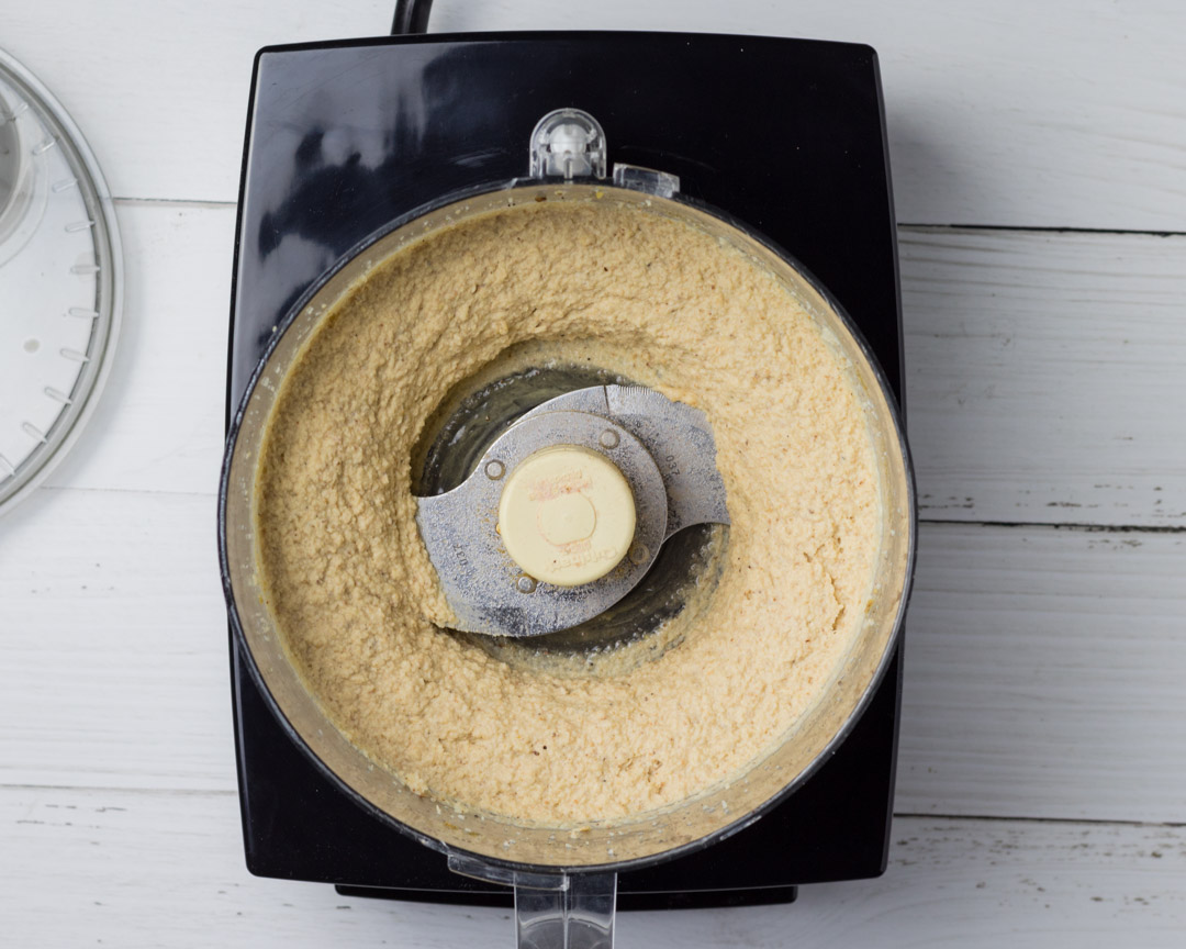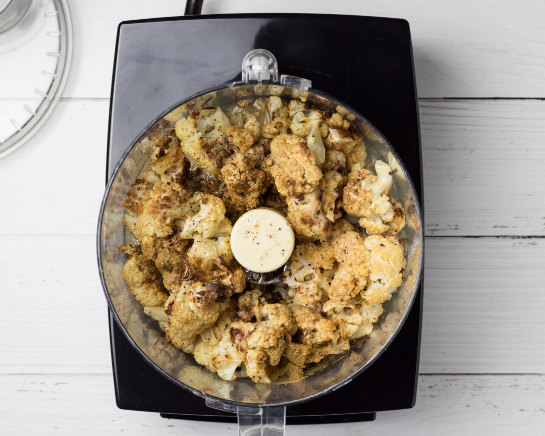 3. Next, place the roasted cauliflower into a food processor along with the remainder of the ingredients and puree until it is your desired consistency.